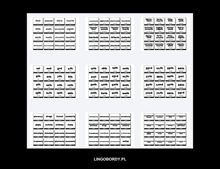 – ZESTAW 1: liczebniki porządkowe: wyrazy po angielsku z wymową